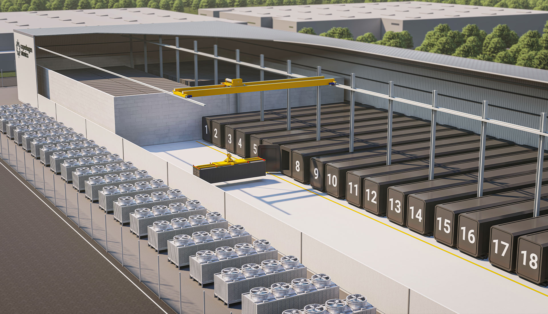 Partial view of a conceptual rendering of a Copenhagen Atomics 1 GW power plant.